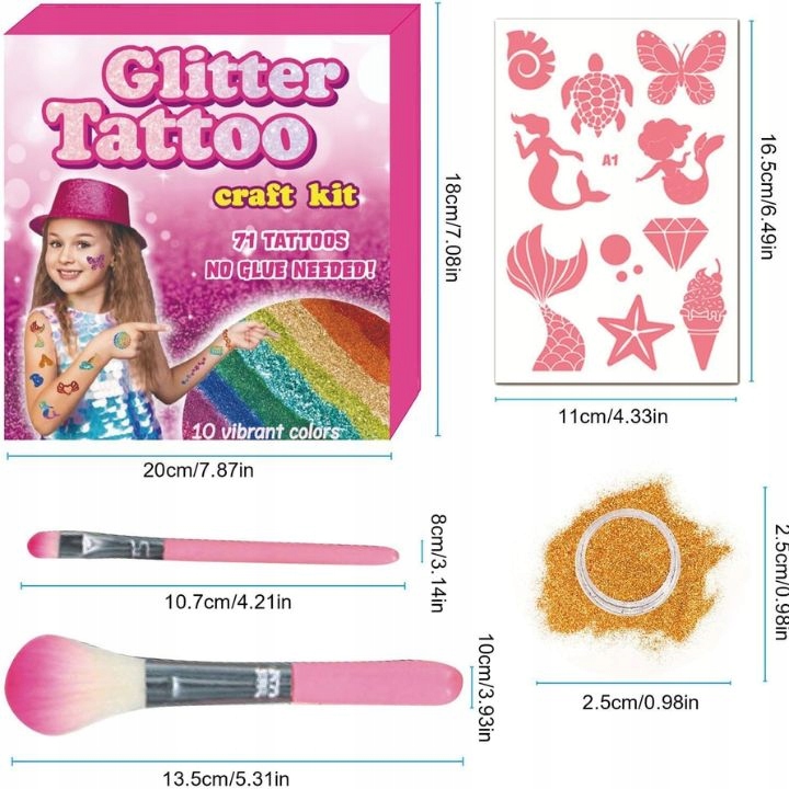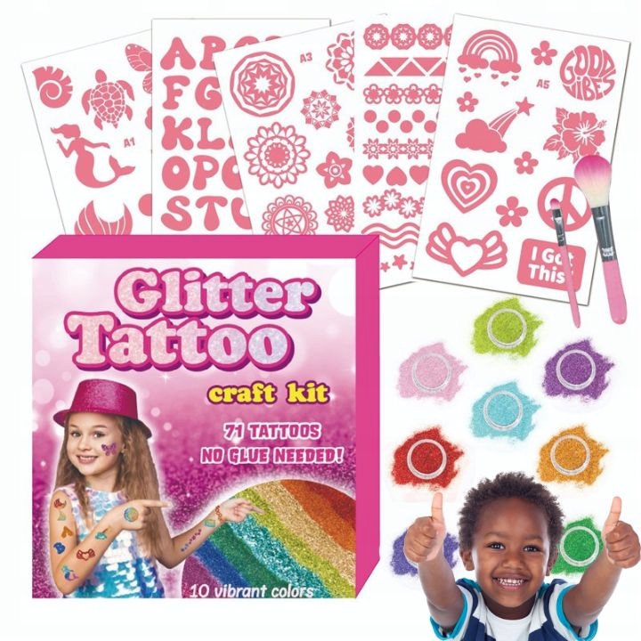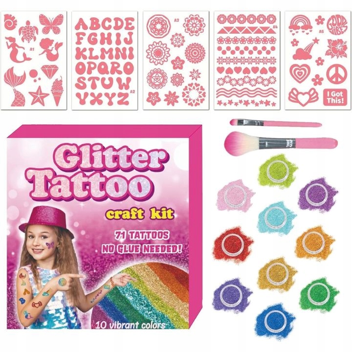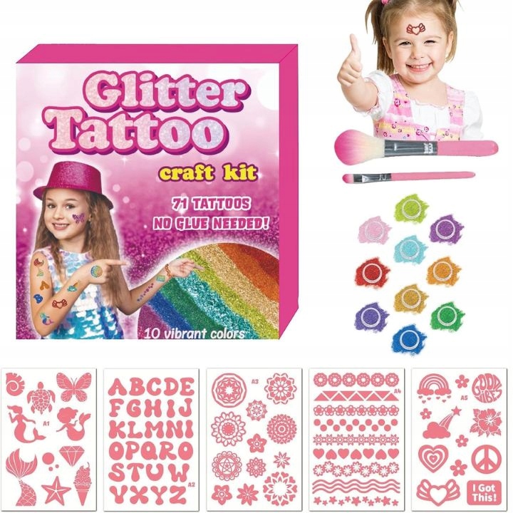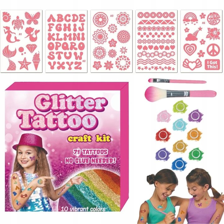 Zestaw TATUAŻE BROKATOWE XXL to doskonały pomysł na prezent dla każdego dziecka lub osoby kochającej błysk i kreatywność.