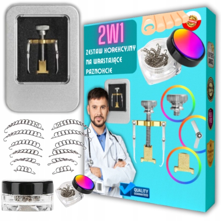 - Wszechstronność: Zestaw nadaje się do użytku zarówno na paznokciach rąk, jak i stóp, a także sprawdza się w przypadku różnych stopni zaawansowania wrastania paznokci.