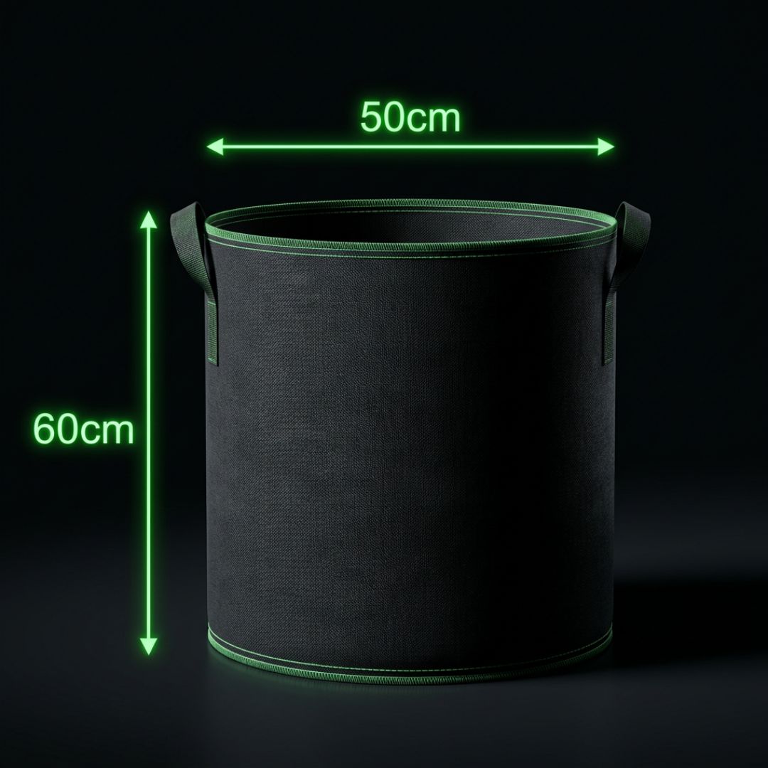 Doniczka o wymiarach 60 cm wysokości i 50 cm średnicy zapewnia dużą pojemność i swobodny rozwój systemu korzeniowego. Sprawdza się przy większych roślinach, warzywach oraz krzewach.