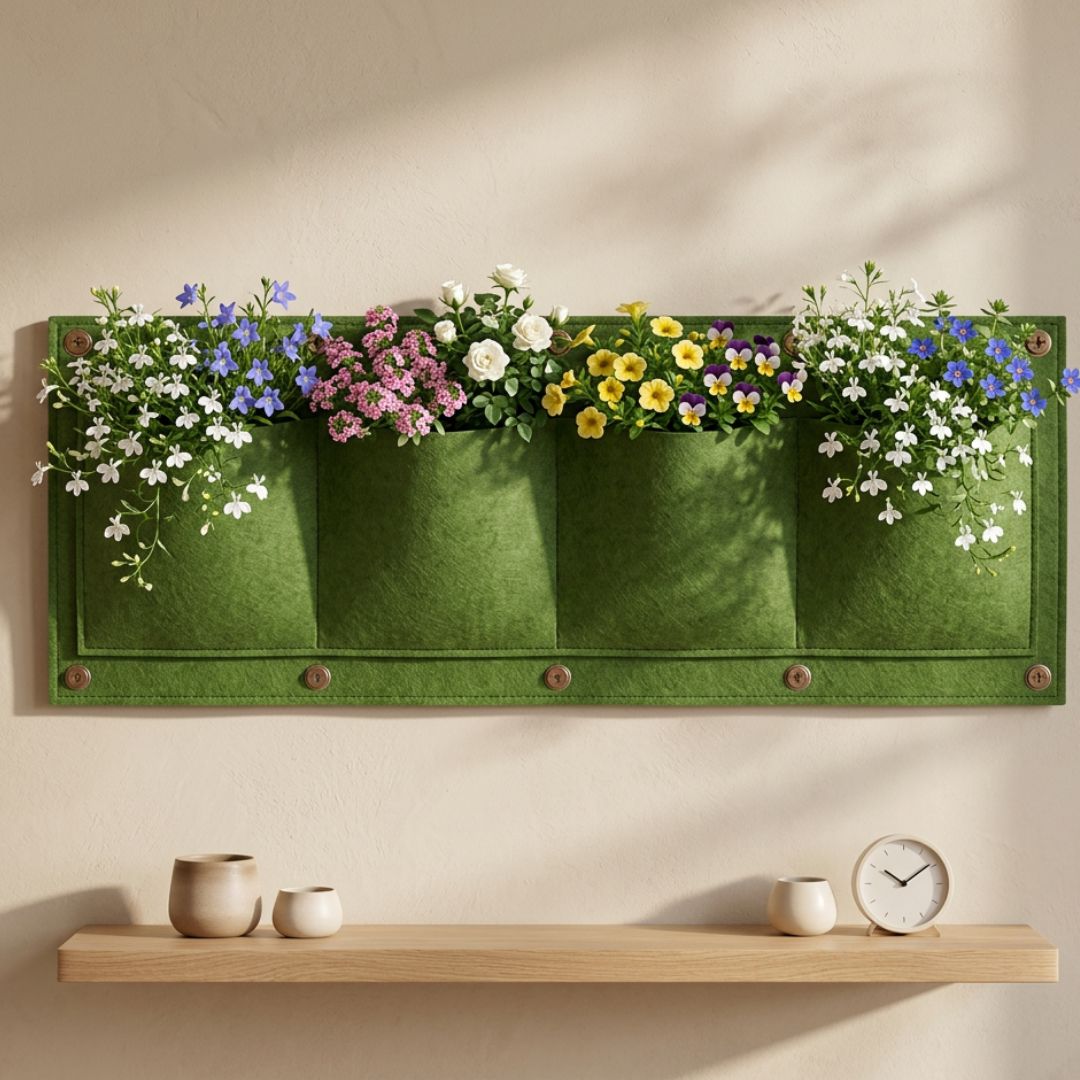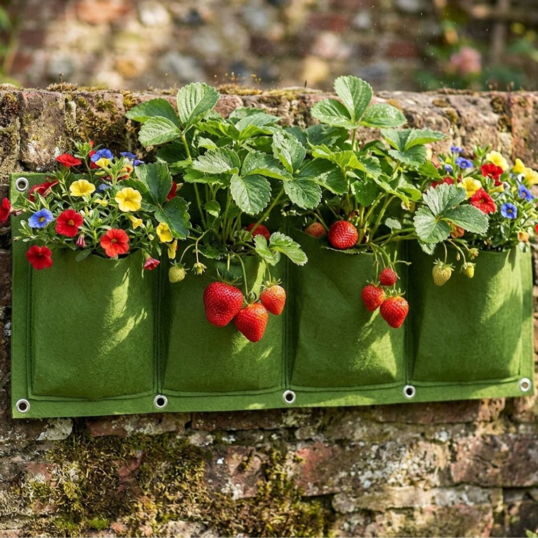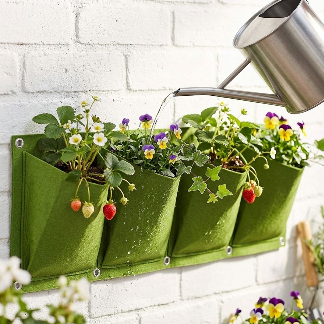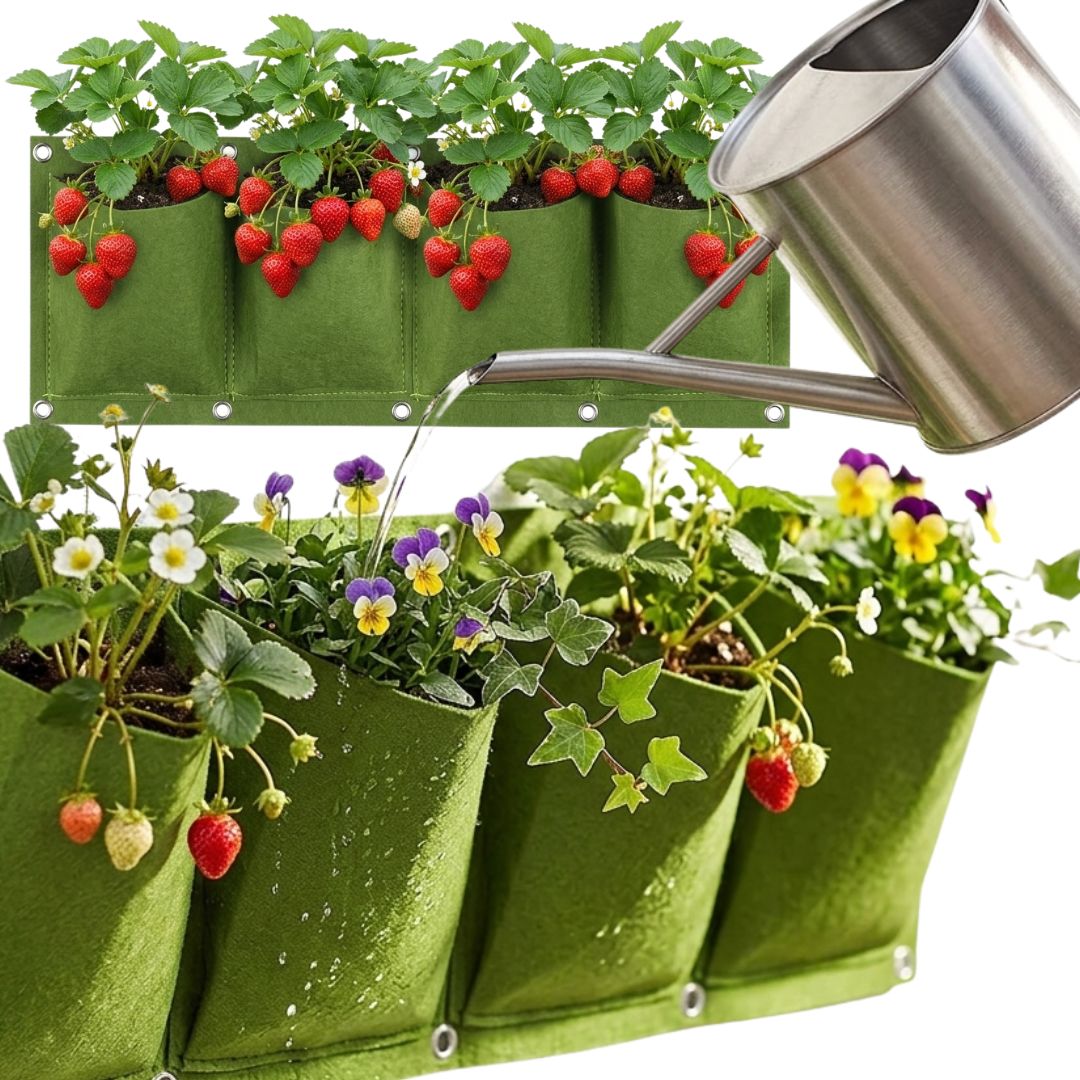 Ta praktyczna, wisząca doniczka pozwala w prosty sposób stworzyć mini ogród w domu, na balkonie lub tarasie. Dzięki czterem kieszeniom możesz uprawiać różne rośliny jednocześnie – od ziół, przez kwiaty, aż po truskawki.