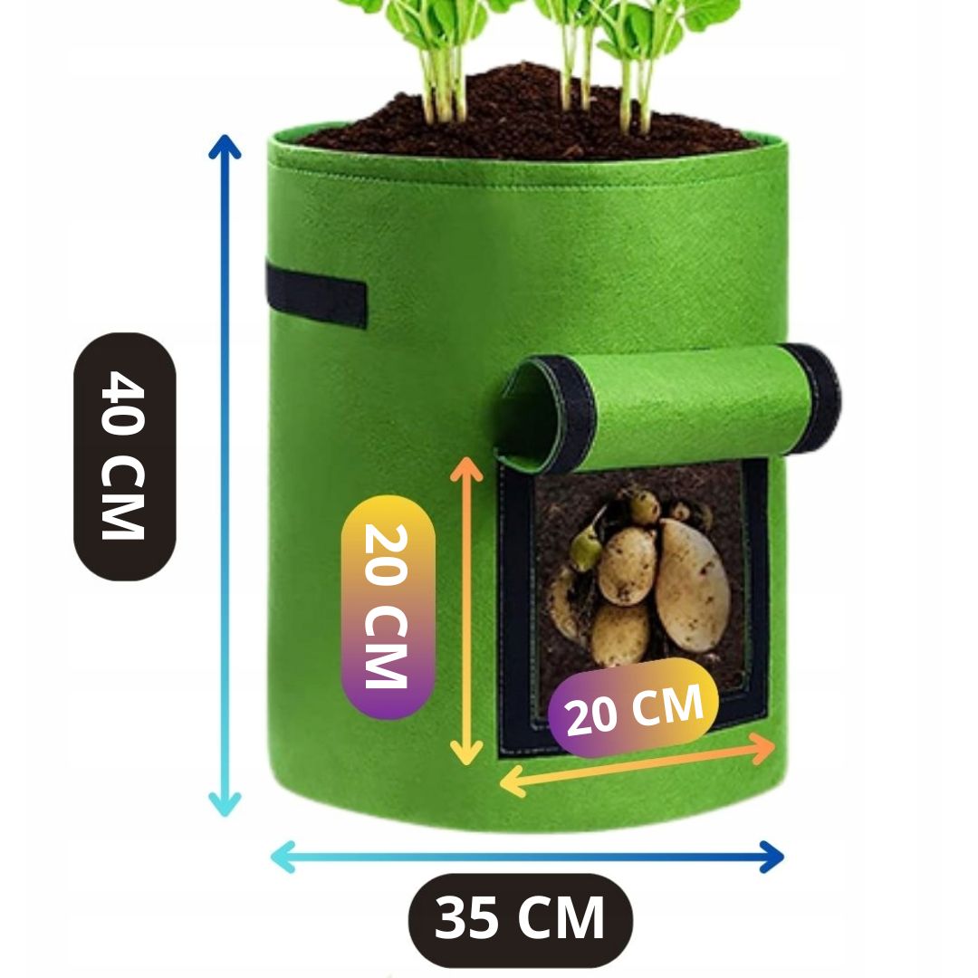 Torba posiada specjalne okno, które umożliwia szybkie sprawdzenie stanu upraw oraz zbiór warzyw bez konieczności wykopywania całej rośliny. To duże ułatwienie, szczególnie przy uprawie ziemniaków.