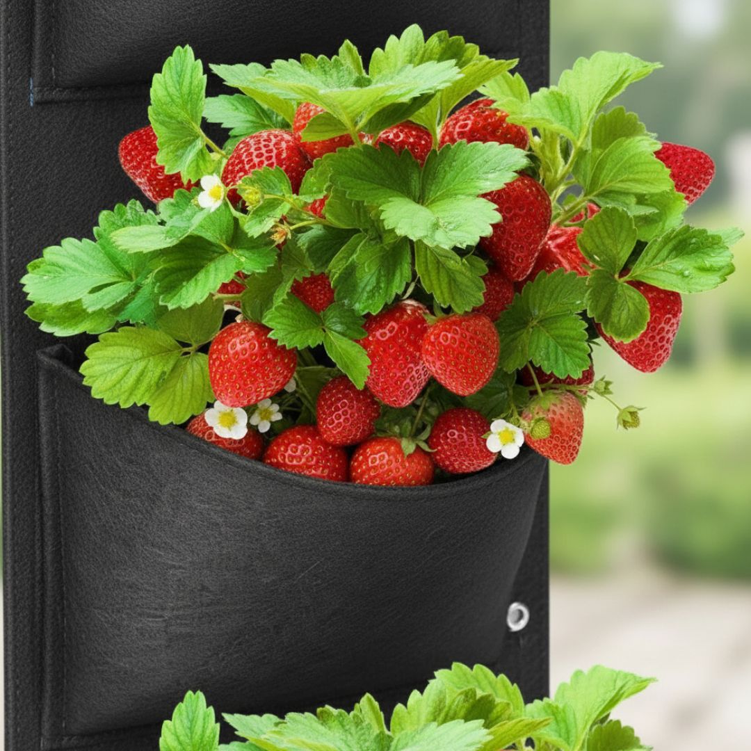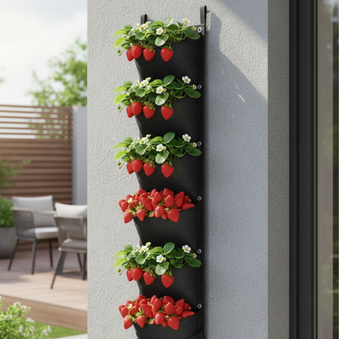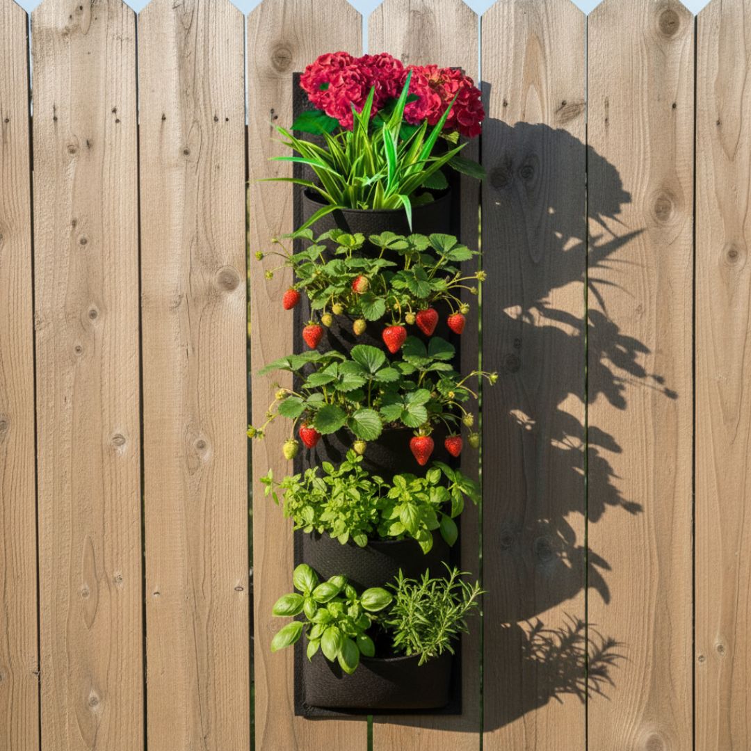 Planter pozwala wygodnie uprawiać zioła, kwiaty ozdobne, rośliny zwisające oraz małe odmiany truskawek. Kaskadowy układ kieszeni sprawia, że rośliny mają odpowiednią przestrzeń do wzrostu, a jednocześnie całość prezentuje się bardzo estetycznie i dekoracyjnie.