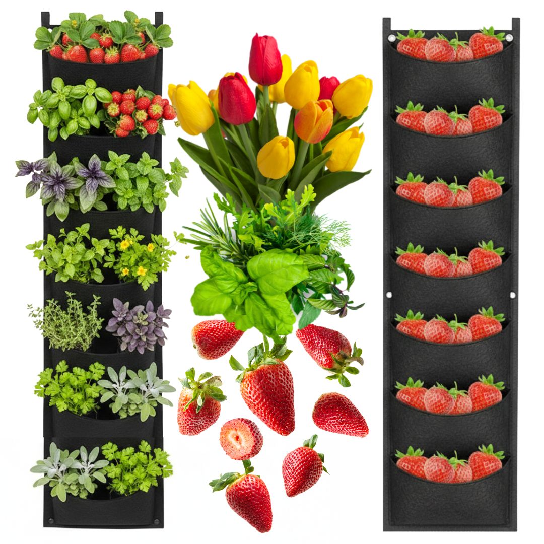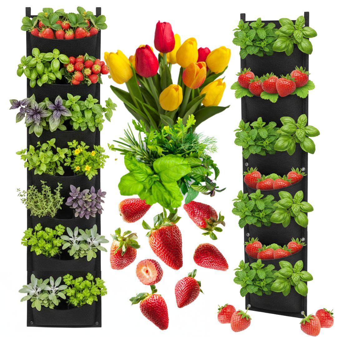 **DONICZKA WISZĄCA NA TRUSKAWKI, KWIATY I ZIOŁA – PLANER / ZIELNIK WERTYKALNY DUŻY XL (7 KIESZENI)**