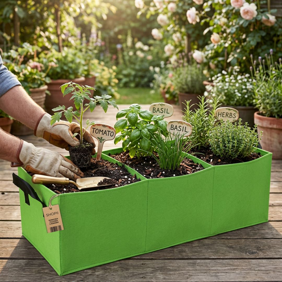 Produkt jest gotowy do użycia w kilka minut. Wystarczy rozłożyć doniczkę, napełnić ją ziemią i posadzić rośliny. Nie wymaga narzędzi ani doświadczenia ogrodniczego.