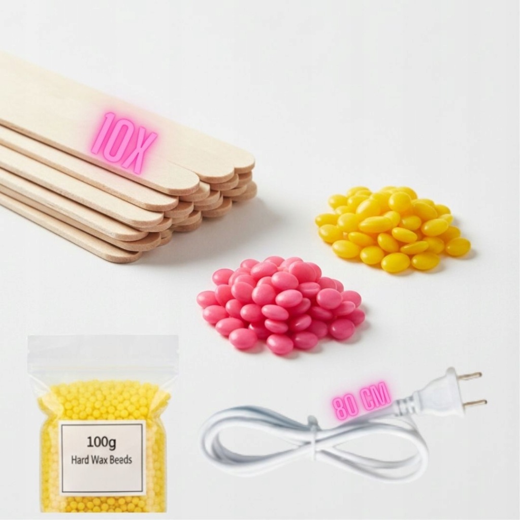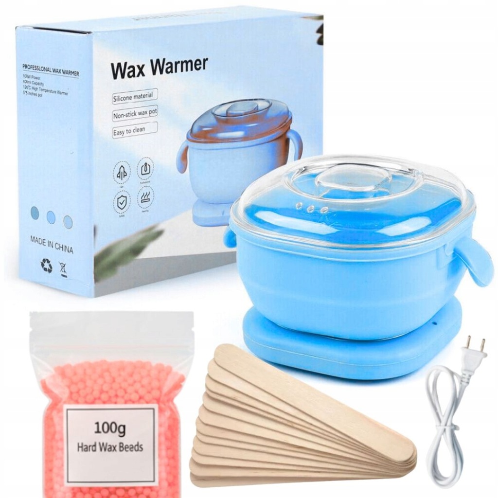 PODGRZEWACZ DO WOSKU ZESTAW DO DEPILIACJI WŁOSÓW + TWARDY WOSK 100G + 10X PATYCZKI + DŁUGI KABEL 80 CM