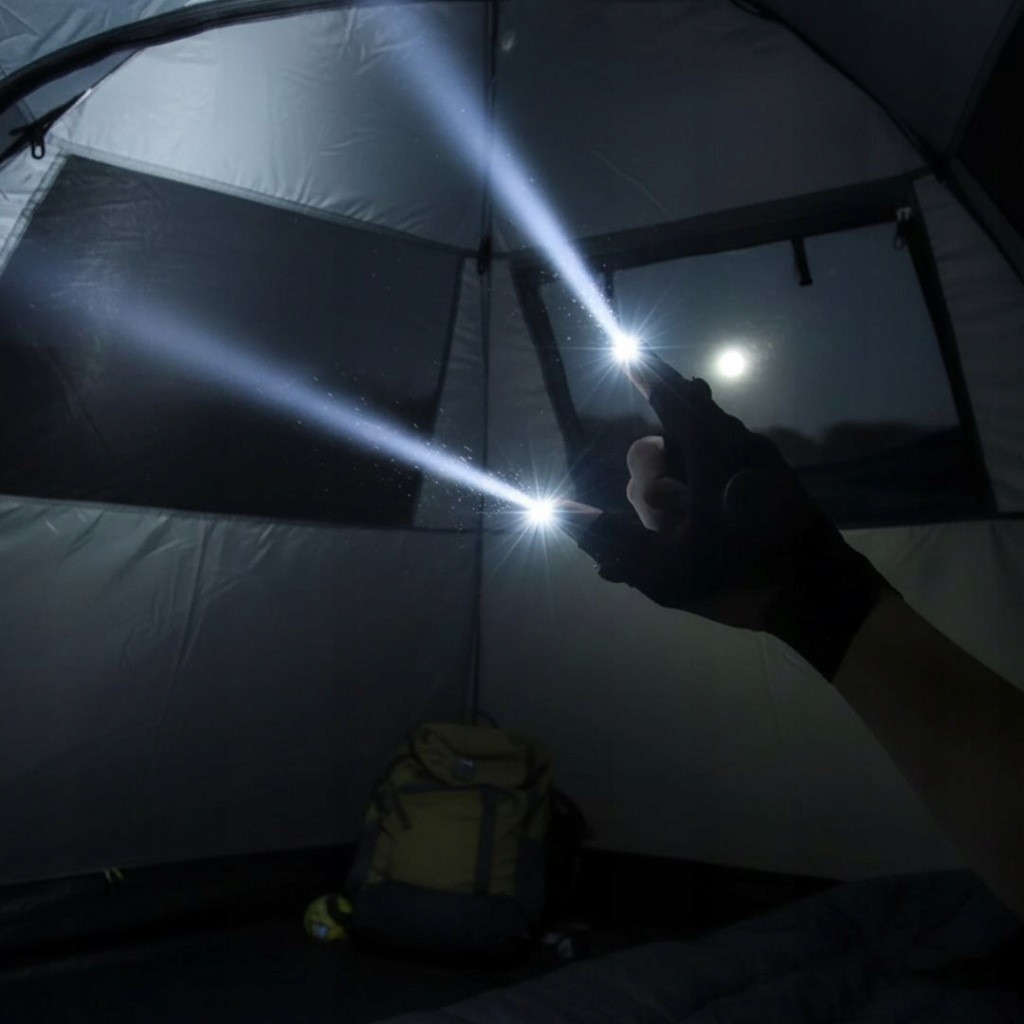 Dwie diody LED umieszczone na palcu wskazującym oraz kciuku zapewniają punktowe i precyzyjne oświetlenie. Światło podąża dokładnie za ruchem dłoni, dzięki czemu nie potrzebujesz dodatkowej latarki.