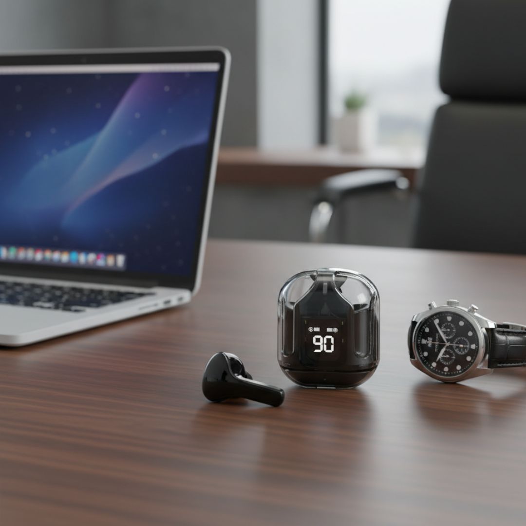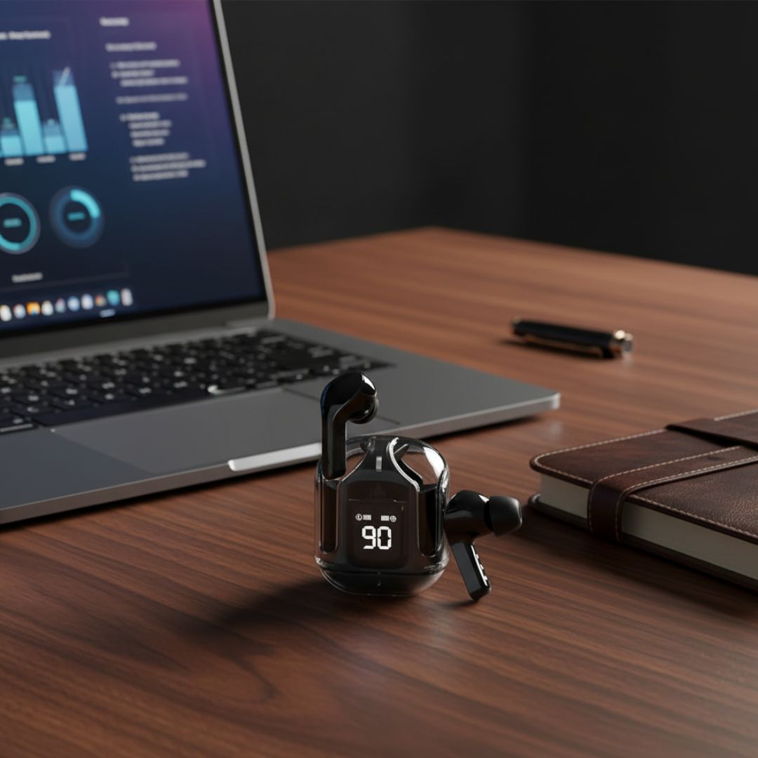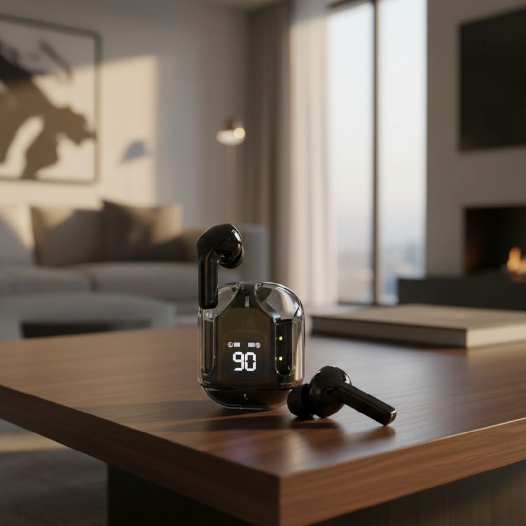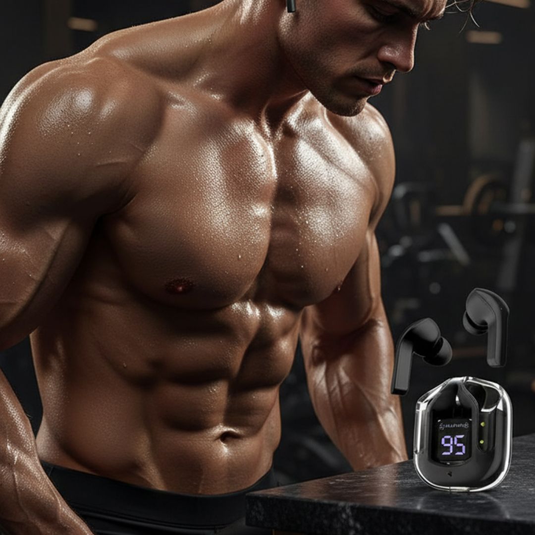 ULTRAPODS MAX to bezprzewodowe słuchawki douszne stworzone dla osób ceniących nowoczesny styl i dopracowane detale. Przezroczysta obudowa nadaje słuchawkom unikalny, futurystyczny charakter, wyróżniając je wśród innych modeli. To nie tylko sprzęt audio – to element wizerunku, który podkreśla indywidualność użytkownika.