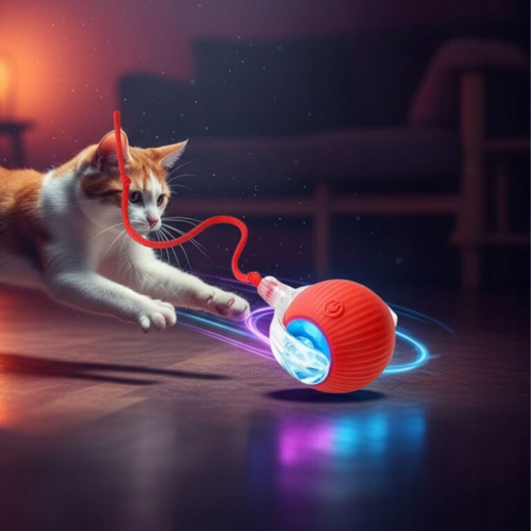 Wbudowane kolorowe diody LED świecą podczas pracy, dodatkowo przyciągając uwagę zwierzęcia – szczególnie w ciemniejszych pomieszczeniach. To połączenie ruchu i światła skutecznie pobudza naturalne instynkty łowieckie.