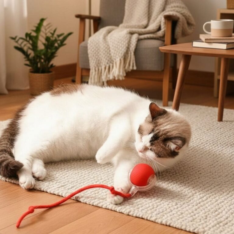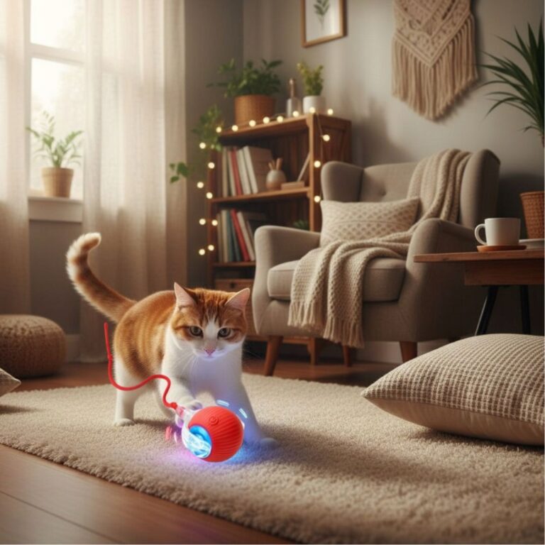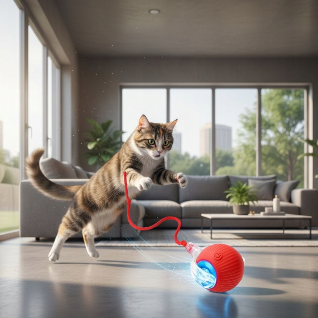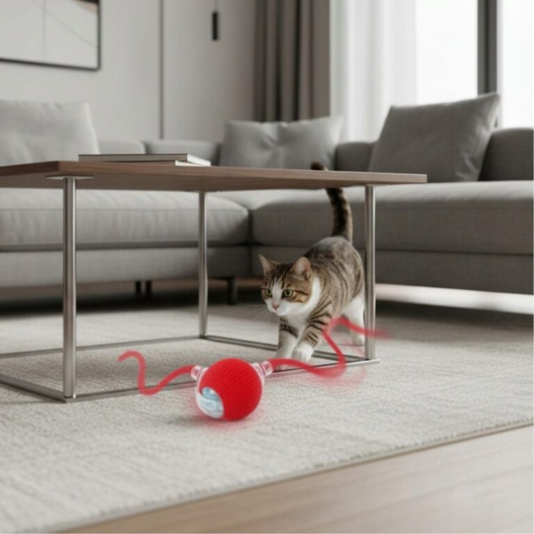 Jest lekka, kompaktowa i poręczna, dzięki czemu zwierzę może ją swobodnie chwytać i turlać. Działa zarówno na twardych podłogach, jak i dywanach, a jej cicha praca nie jest uciążliwa dla domowników.