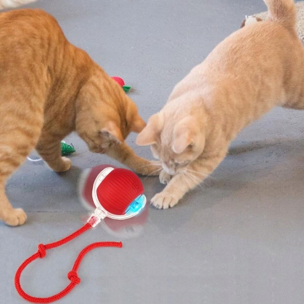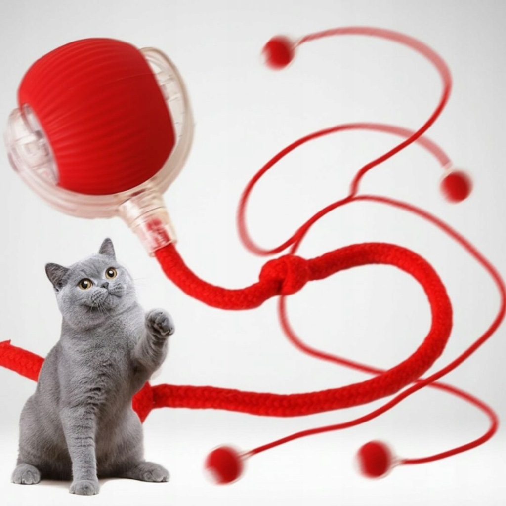 UCIEKAJĄCA PIŁKA ZABAWKA DLA KOTA PSA INTERAKTYWNA ELEKTRYCZNA WIBRACJE LED Z SZNURKIEM JAK OGON
